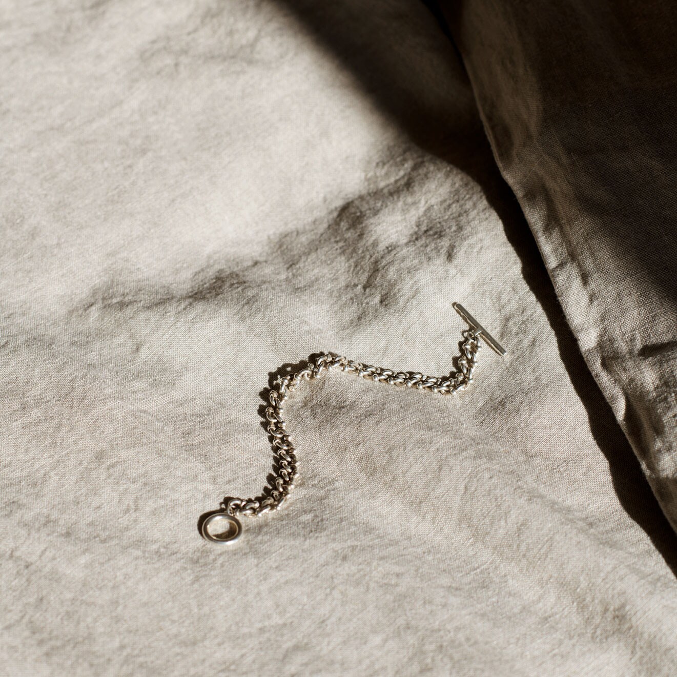 Både putevar og dynetrekk lukkes med vakre knapper av skjell.