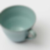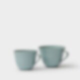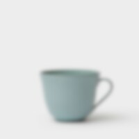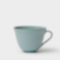 Tekopp i høybrent steingods med en matt turkis glasur. Laget av Annica Gjerstad i hennes keramikkverksted i Sverige.
