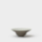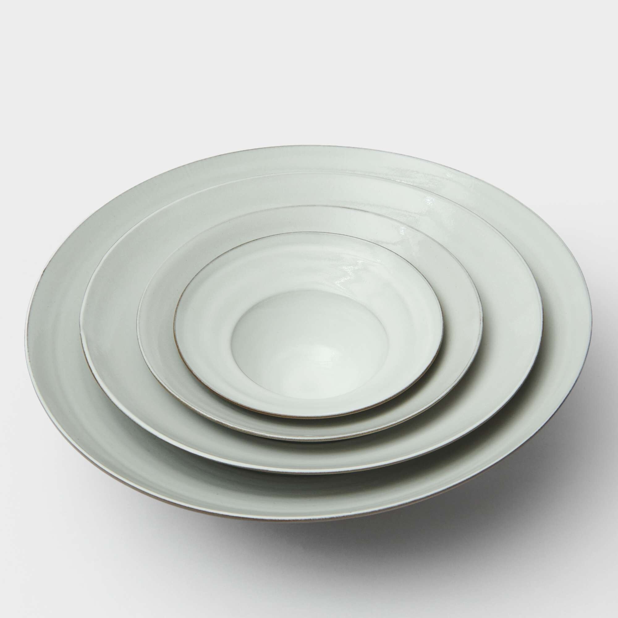 Stor skål i antrasittgrå steingods med ubehandlet utsiden og glasert innsiden i halvtransparent hvit glasur.
